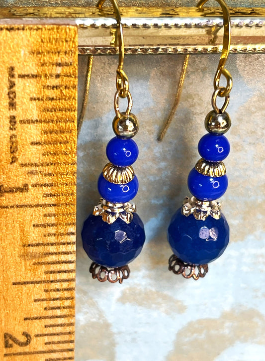 Vintage Earrings, Blue Vintage Czech Glass With brass Metal. Hypoallergenic French Earring Hooks, Gold Plated Wire