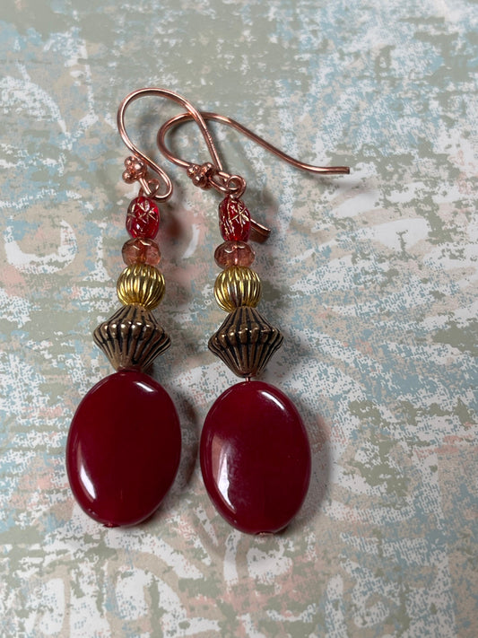 Vintage Jade Green Glass Earrings with Copper Metal. Copper Plate Plated Wire.