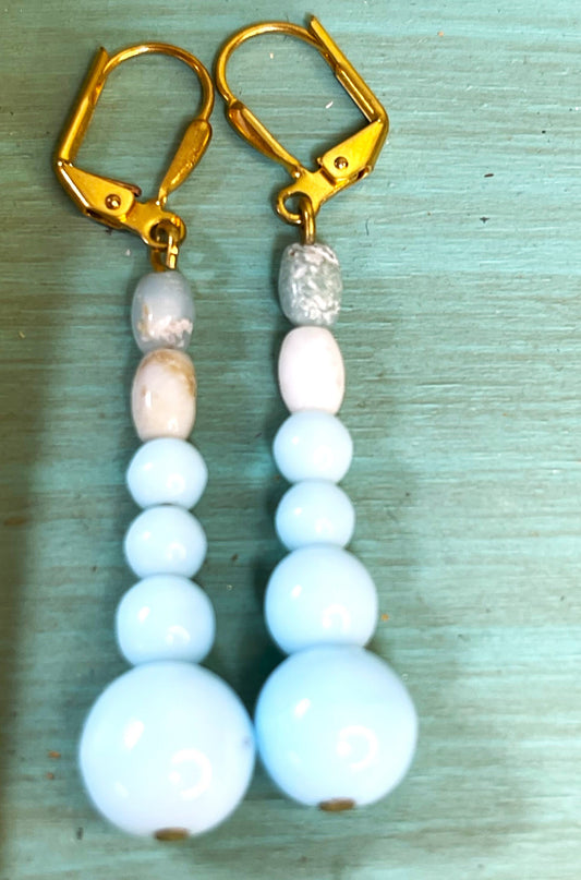 Baby Blue Vintage Graduated Miriam Haskell Beads Used In These Earrings . Hypoallergenic French Earring Hooks, Gold Plated Wire.