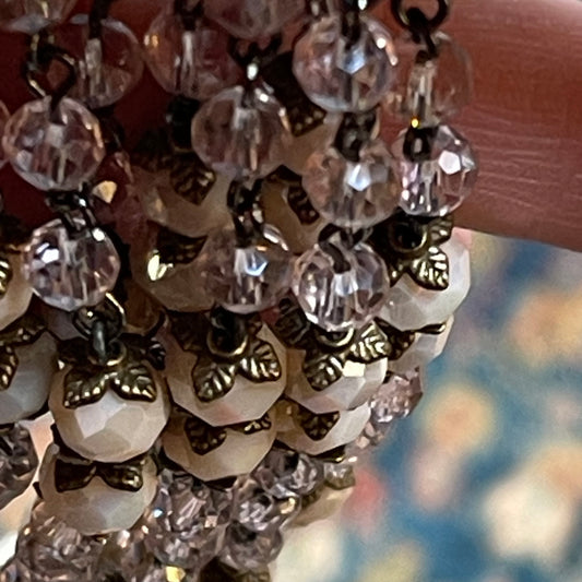 Handcrafted By The Bohemian Jewelry Co., 7.8mm Pale Pink Crystal And Cream Bead Chain. Sold By the Foot