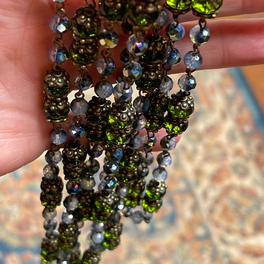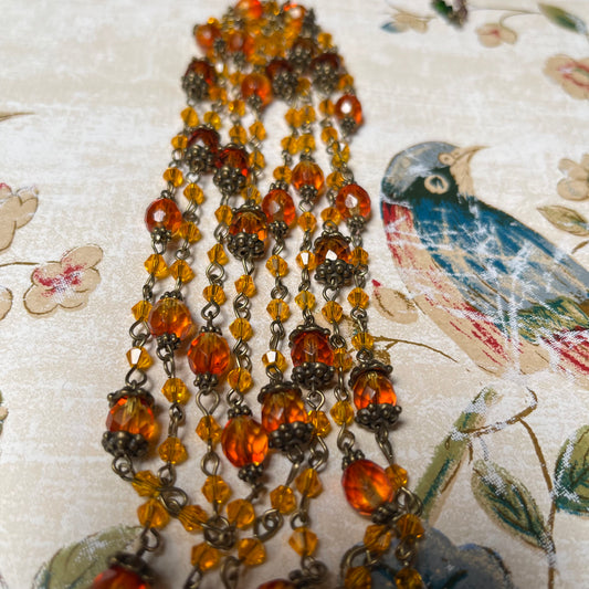 Handcrafted By The Bohemian Jewelry Co., 7.7mm Golden Fall Topaz and Green Glass With Brass Wire.Bead Chain. Sold By the Foot