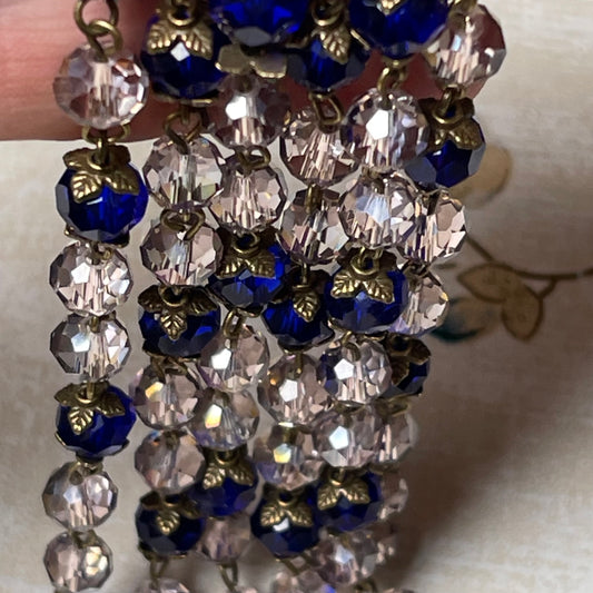 Handcrafted By The Bohemian Jewelry Co., 7.6mm Pale Purple and Cobalt Blue Glass with Brass. Bead Chain. Sold By the Foot