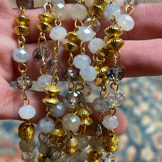 Handcrafted By The Bohemian Jewelry Co. 7.4mm Crystal And Gold Bead Chain. Sold By The Foot