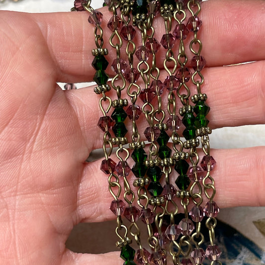 Handcrafted By The Bohemian Jewelry Co., 7.7mm Delicate Emerald and Purple Bead Chain, Sold By the Foot