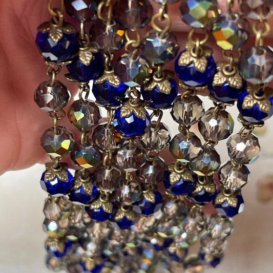 Handcrafted By The Bohemian Jewelry Co., 7.6mm Smokey Topaz and Cobalt Blue Glass with Brass Wire. Bead Chain. Sold By the Foot